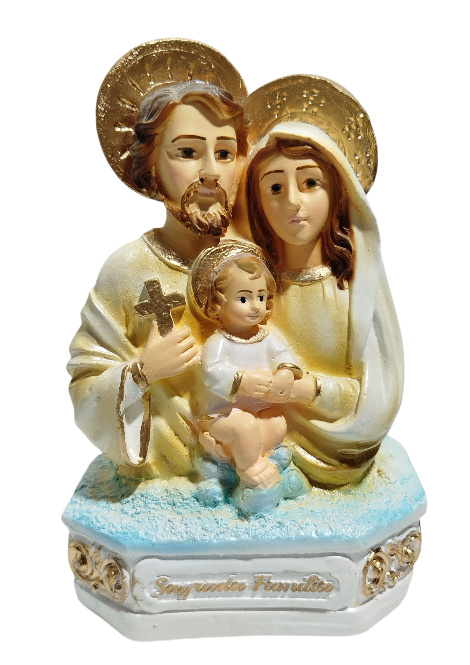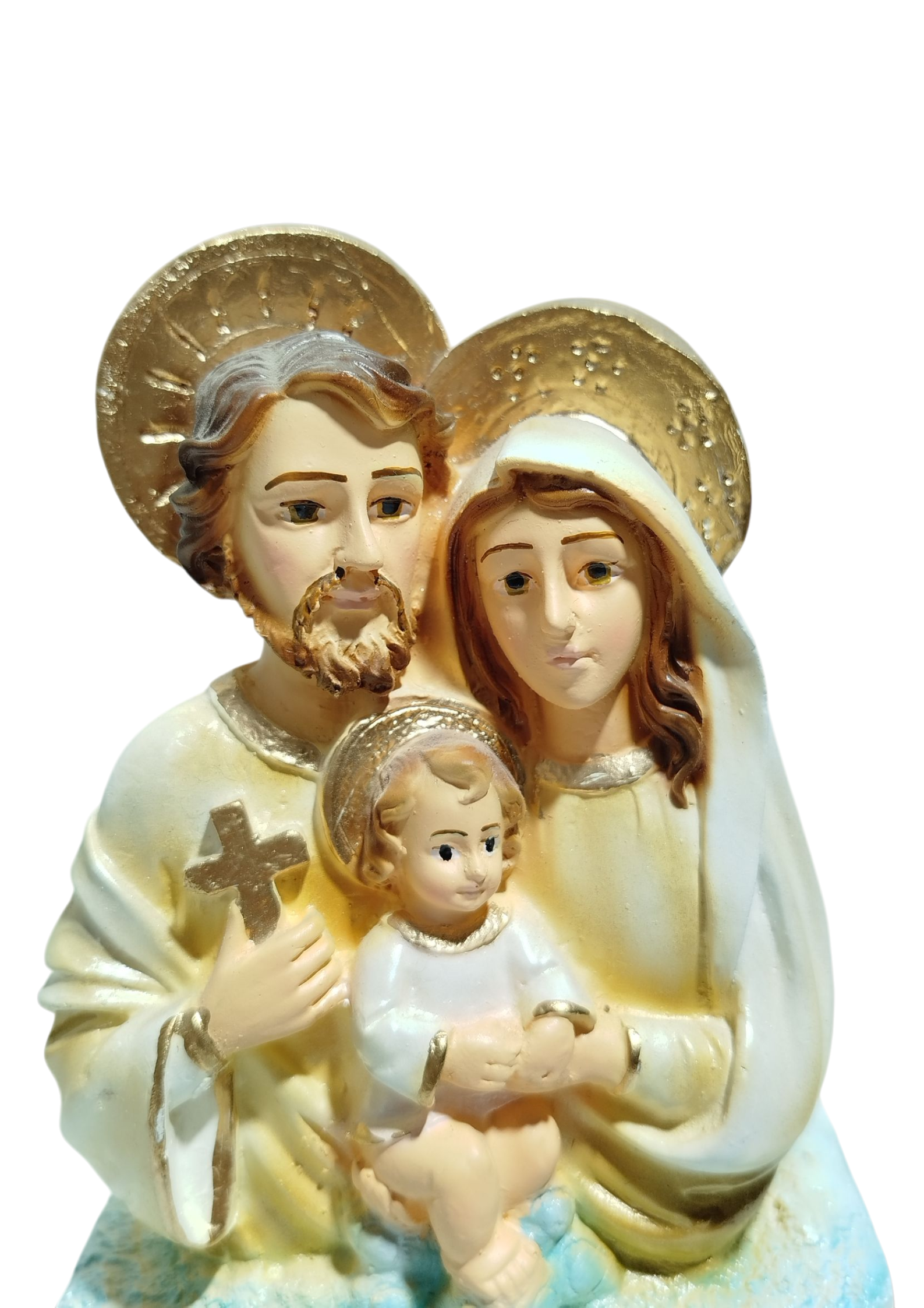 Imagem Busto Sagrada Família 15cm Dourada Símbolo de União e Fé