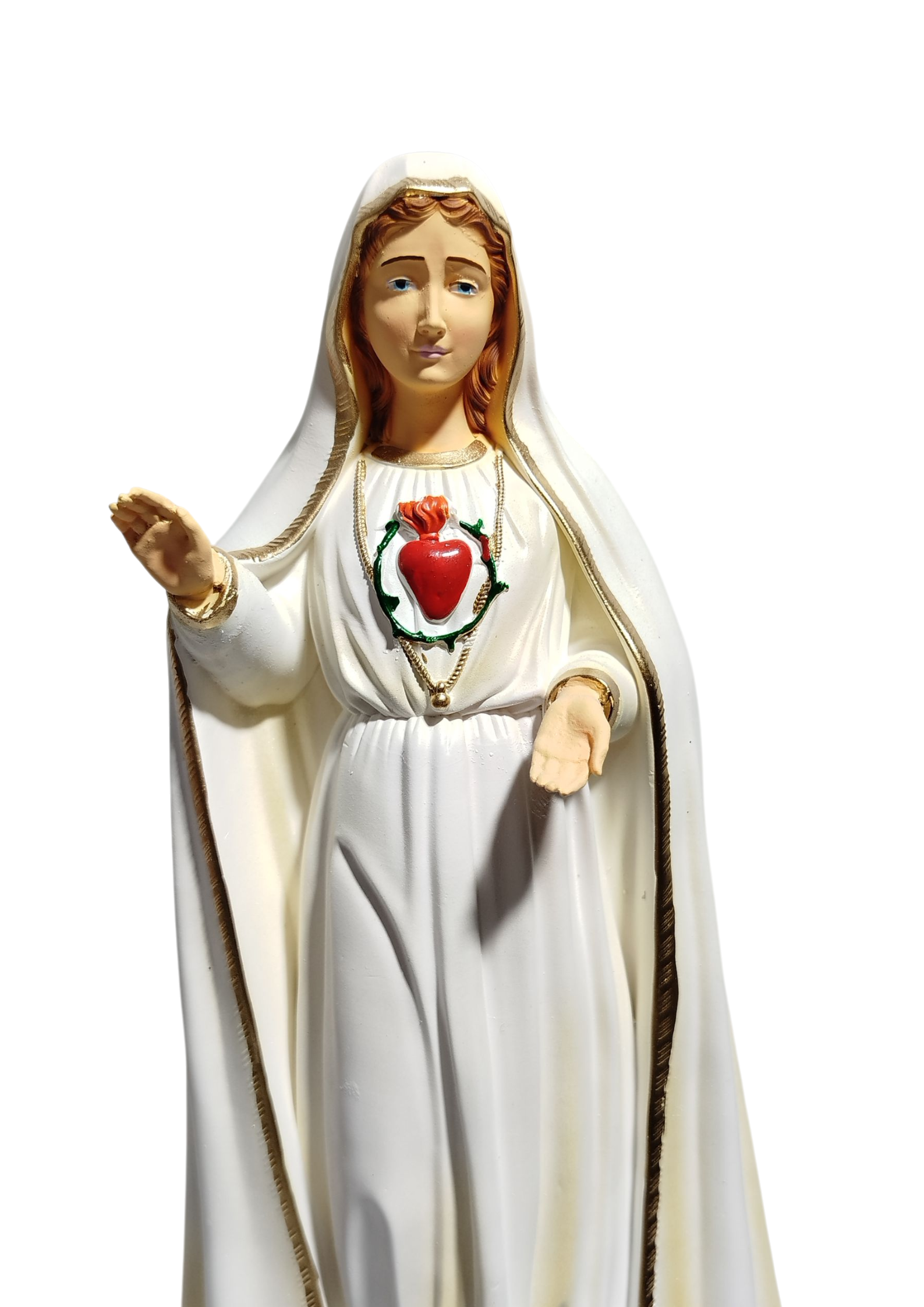 Imagem Coração de Fátima 30cm Pintada Arte Sacra de Luxo Premium