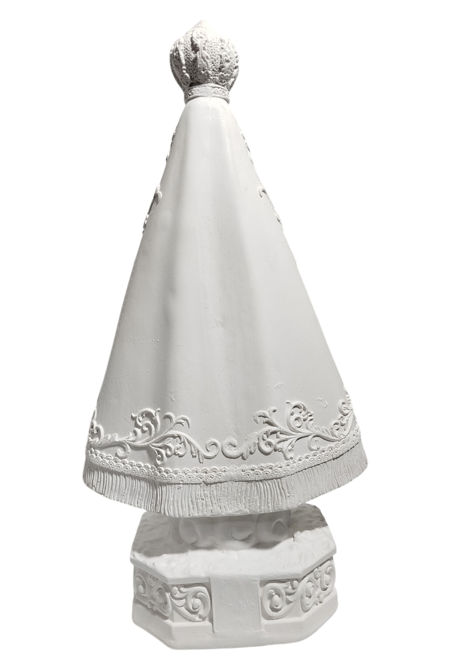 Esta imagem em gesso cru é uma peça artesanal meticulosamente esculpida, perfeita para aqueles que apreciam a beleza do design em seu estado mais puro. Feita de gesso de alta qualidade, a obra apresenta uma superfície branca e opaca, proporcionando uma base ideal para pinturas ou acabamentos personalizados.