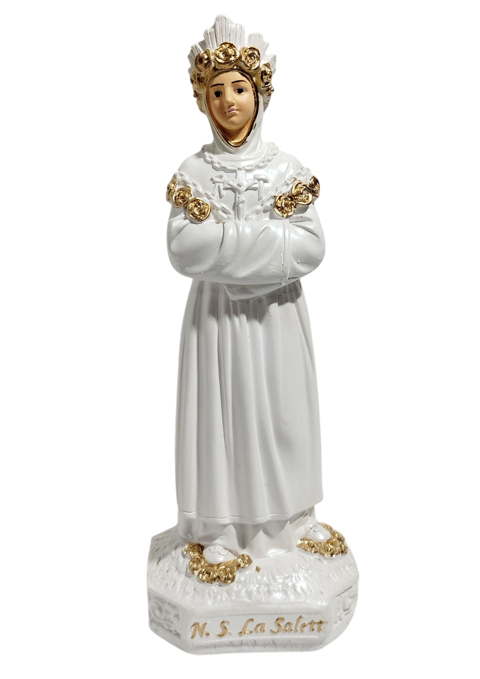 Imagem Nossa Senhora da Salette 20cm Gesso White Perolado Fé e Proteção Premium