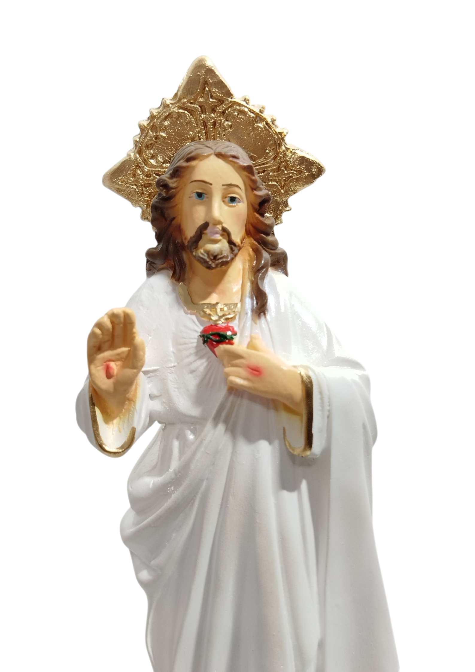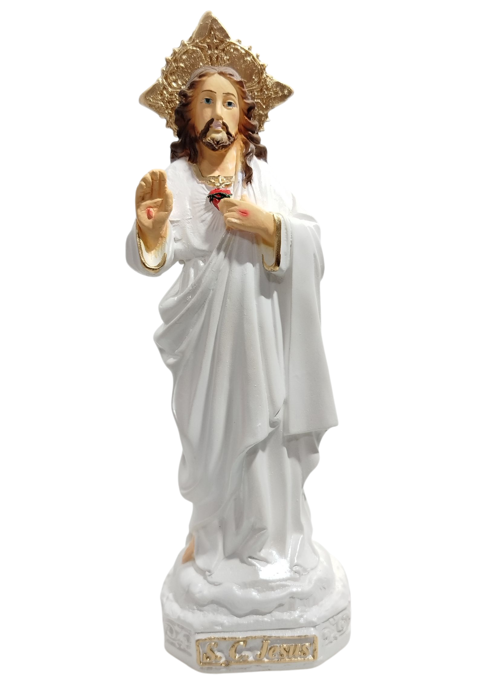 Imagem Sagrado Coração De Jesus 20cm White Perolado Gesso Premium Pintado