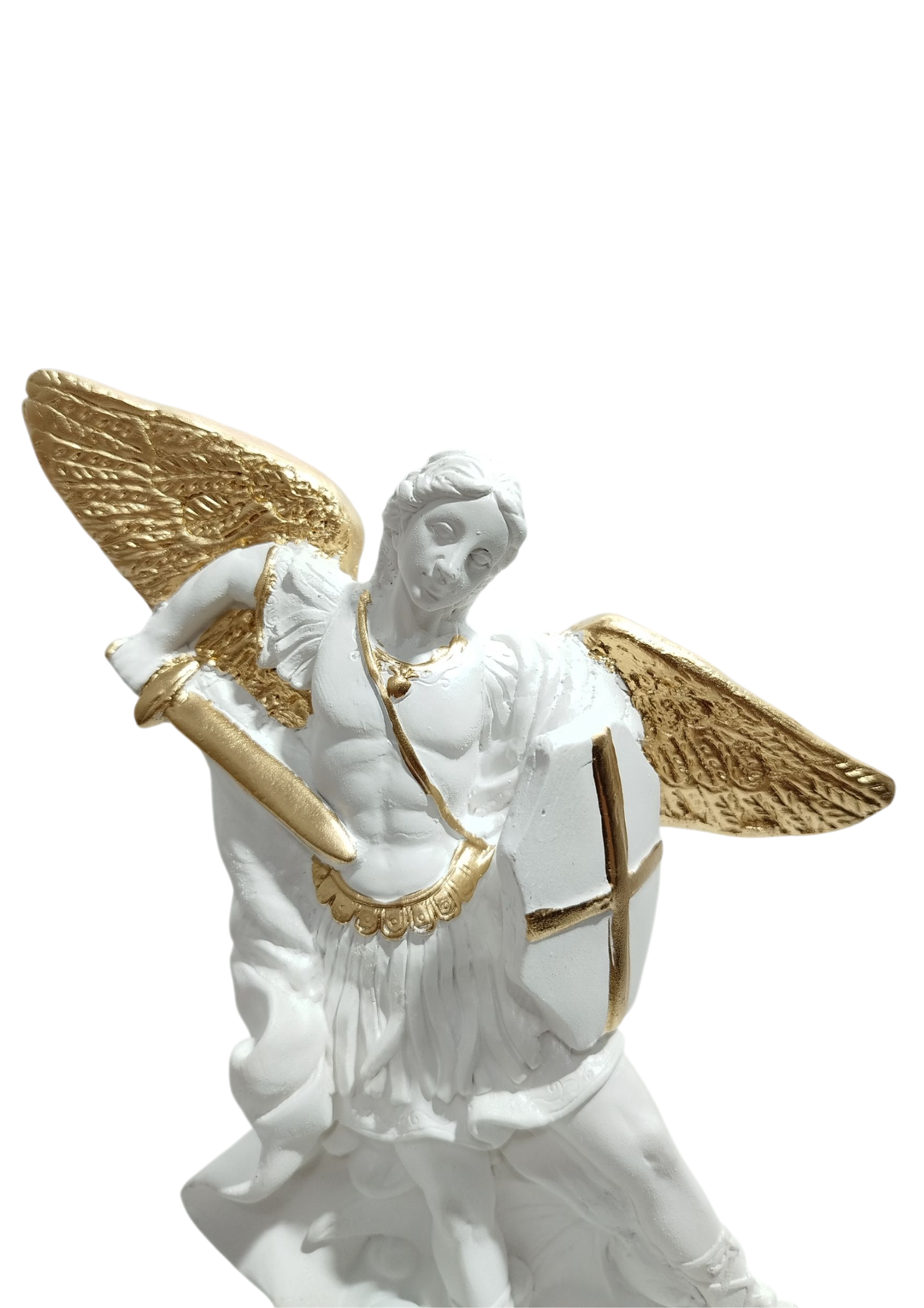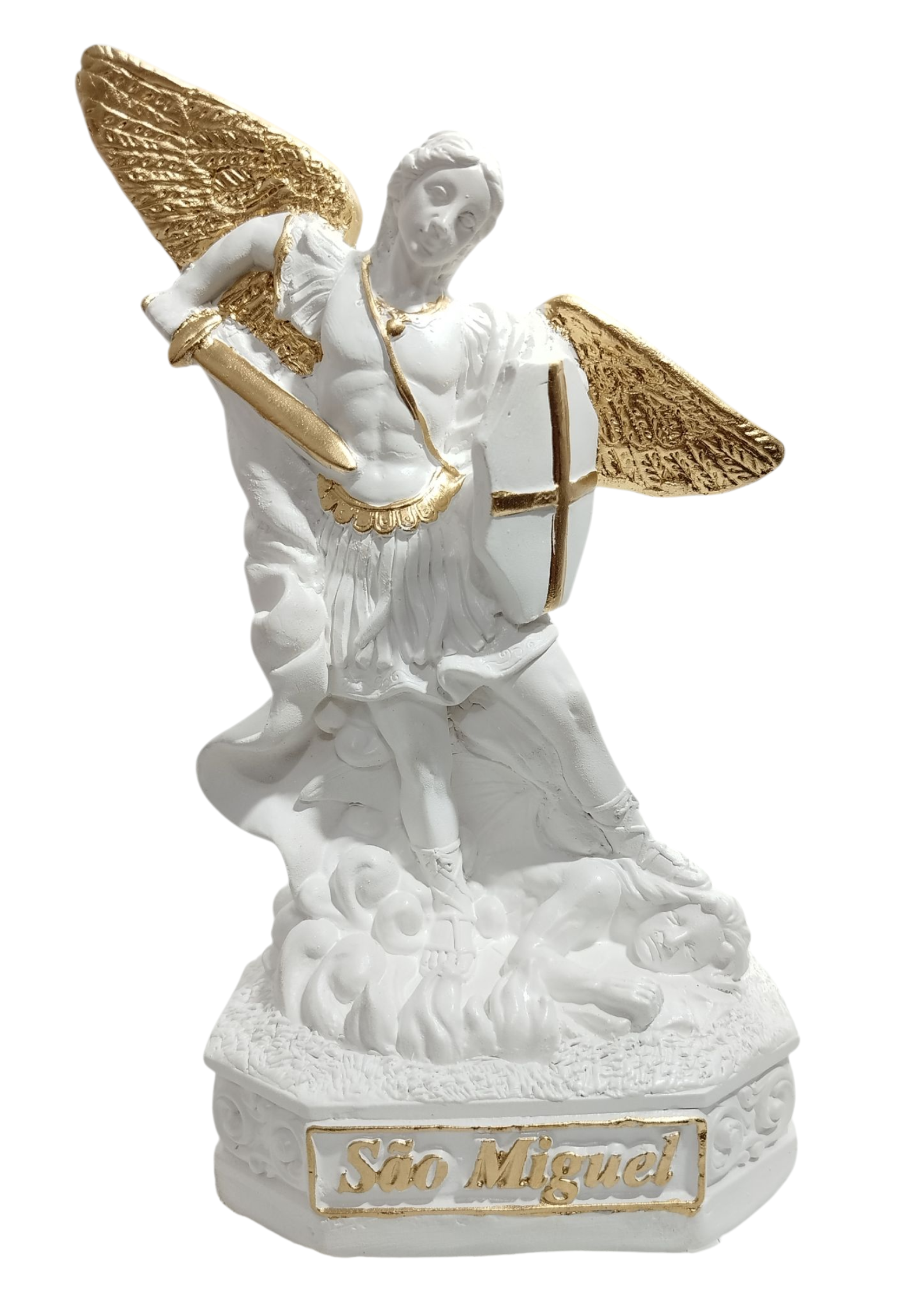 Imagem São Miguel Arcanjo 20cm Branco Perolado Gesso Premium Pintado